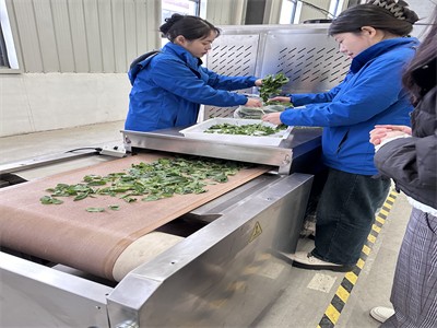 2、加熱均勻:微波殺青烘干是通過(guò)磁控管產(chǎn)生的電磁波均勻地照射到茶葉、鮮花上,內(nèi)、外同時(shí)加熱,無(wú)焦葉、焦邊、碎渣等,產(chǎn)品質(zhì)量好;由于茶葉表面溫度不太高,葉綠素變動(dòng)少,色澤綠翠而耐藏,香味損失少,干燥均勻。