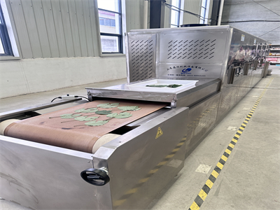 微波烘干隧道爐的工作原理基于微波加熱作用。當(dāng)構(gòu)樹(shù)葉通過(guò)隧道式傳送帶進(jìn)入微波場(chǎng)時(shí),物料中的水分子在電磁場(chǎng)作用下高速振動(dòng)摩擦產(chǎn)生熱量,從而實(shí)現(xiàn)由內(nèi)而外的均勻加熱。與傳統(tǒng)烘干方式相比,這種獨(dú)特的加熱機(jī)制具有顯著優(yōu)勢(shì):首先,微波能直接作用于物料內(nèi)部,熱傳導(dǎo)方向與水分?jǐn)U散方向一致,縮短了干燥時(shí)間,通常能將傳統(tǒng)數(shù)天的干燥過(guò)程縮短至幾十分鐘;其次,微波的選擇性加熱特性使其能作用于水分,避免了高溫對(duì)熱敏性成分的破壞,保留了構(gòu)樹(shù)葉中的有效成分;再者,微波的殺菌作用能有效滅活物料中的微生物和蟲(chóng)卵,顯著延長(zhǎng)了產(chǎn)品的保質(zhì)期。