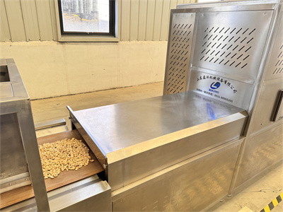 首先,隧道式微波烘烤設備在加熱效率方面具有突出優勢。微波加熱是一種內加熱方式,能夠直接作用于花生米內部的水分子,使其快速產生熱量。與傳統熱風烘烤相比,微波加熱不需要通過介質傳導熱量,因此加熱速度快,效率高。根據實際生產數據,隧道式微波烘烤設備可以將花生米的烘烤時間縮短50%以上,提高了生產效率。同時,微波加熱的均勻性好,能夠避免傳統烘烤中常見的局部過熱或烘烤不均的問題,確保每粒花生米都能達到理想的烘烤效果。