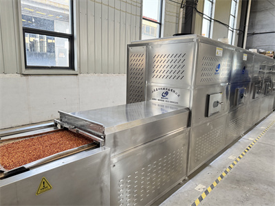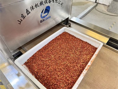 這種微波干燥設(shè)備就像一條長長的隧道,辣椒碎在傳送帶上緩緩?fù)ㄟ^時,會接受均勻的微波照射。與傳統(tǒng)熱風(fēng)烘干不同,微波是從辣椒內(nèi)部開始加熱,水分被迅速汽化排出。整個過程幾分鐘就能完成,既殺滅了細菌,又不會讓辣椒中的色素和揮發(fā)性物質(zhì)受損。
