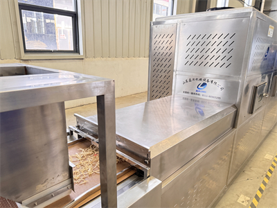 微波膨化設備的核心在于利用微波加熱機制。當微波作用于豬皮時,食材中的水分子會劇烈振蕩運動產生摩擦熱,使得豬皮內部的水分在短時間內達到汽化。與傳統熱傳導加熱不同,微波能夠穿透食材直接進行體積加熱,避免了表面焦糊而內部未熟的問題。在密閉的隧道爐環境中,這種快速汽化過程會在豬皮內部形成均勻分布的微孔結構,最終創造出酥脆蓬松的獨特質地。這種加熱方式不僅效率高,而且能夠保留食材的營養成分和風味物質。