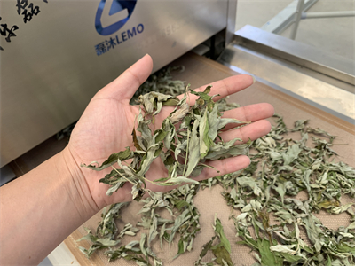 其次,微波烘干能夠實現均勻烘干。由于微波的穿透性,艾葉內部的水分能夠迅速受熱蒸發,避免了傳統烘干方法中因表面水分蒸發過快而導致的內部水分滯留問題。這使得烘干后的艾葉品質均勻,藥效得以保留。