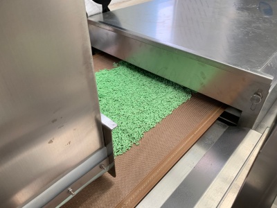 第五,微波烘干設備啟動與停止反應較快。操作人員關閉微波輸出后,加熱過程基本同步停止,不像熱風設備需要等待加熱腔和空氣冷卻。這在需要頻繁調整生產節奏的貓砂產線上比較方便。